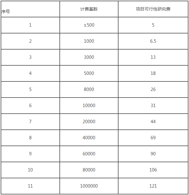 項目可行性研究費計費標(biāo)準(zhǔn)